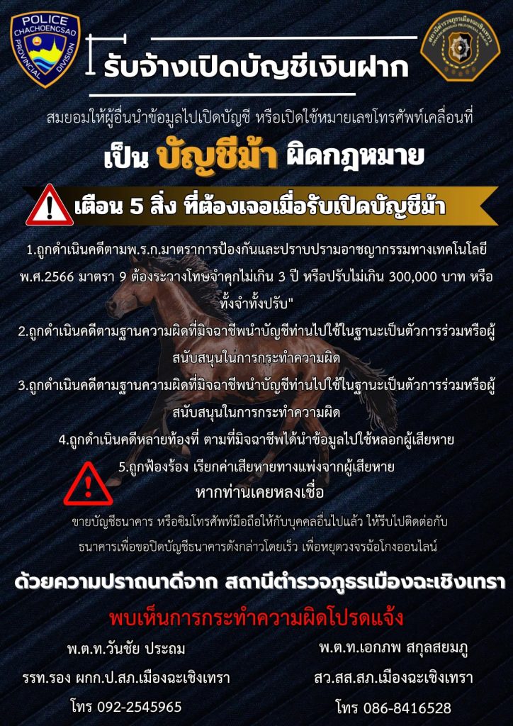ประชาสัมพันธ์ป้องกันการรับเปิดบัญชีม้านำไปใช้ในการโอนเงินประกอบการทำอาชญากรรมออนไลน์