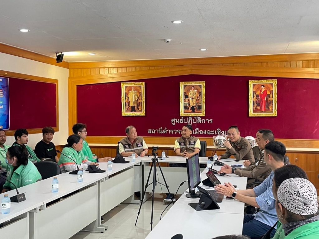 ร่วมกันรณรงค์ให้ความรู้เกี่ยวกับการขับขี่ปลอดภัยให้กับกลุ่มผู้ประกอบการขนส่งไรเดอร์(Lineman) ในพื้นที่จังหวัดฉะเชิงเทรา