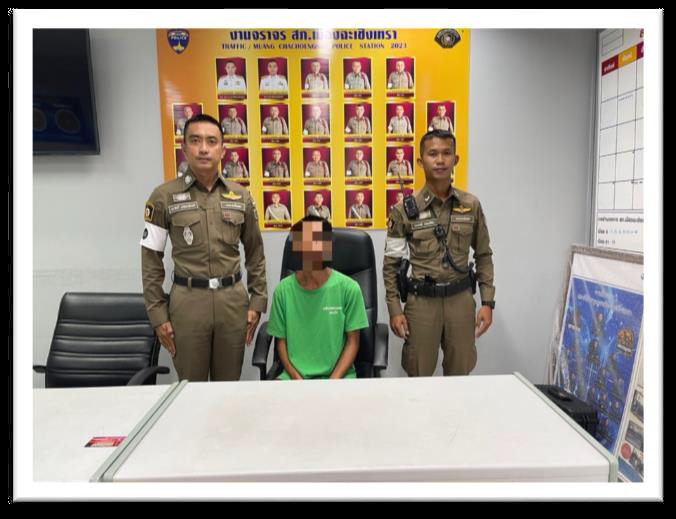 พร้อมกำลังเจ้าหน้าที่ตำรวจจร สภ.เมืองฉะเชิงเทรา ร่วมกันจับกุม