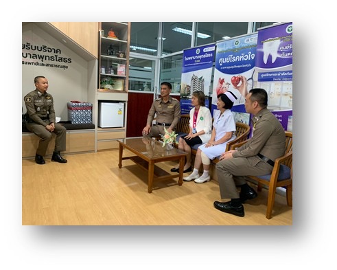 เข้าพบแพทย์หญิงนาตยา มิลส์ ผู้อำนวยการโรงพยาบาลพุทธโสธร เพื่อหารือเกี่ยวกับการแก้ไขปัญหาการเกิดอุบัติเหตุในพื้นที่ เพื่อนำไปเป็นแนวทางในการป้องกันอุบัติเหตุต่อไป ณ โรงพยาบาลพุทธโสธร อำเภอเมือง จังหวัดฉะเชิงเทรา