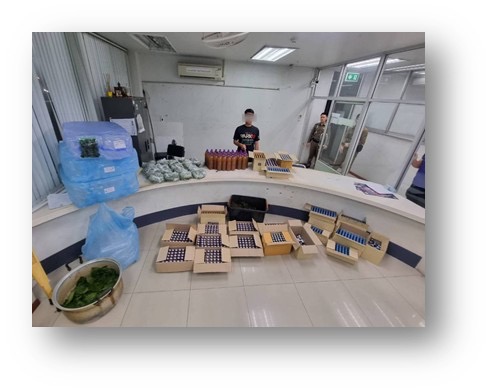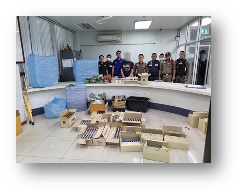 นายธนา (นามสมมุติ) อายุ ๒๓ ปี ในความผิดฐาน “ฝ่าฝืนประกาศกระทรวงสาธารณสุข (ฉบับที่ ๔๓๐) พ.ศ. ๒๕๖๔ ออกตามความนัย พระราชบัญญัติอาหาร พ.ศ. ๒๕๒๒ เรื่องกำหนดอาหารที่ห้ามผลิต นำเข้า หรือจำหน่าย ตามบัญชีแนบท้ายประกาศ ลำดับที่ ๕๒ (กระท่อม) อันเป็นความผิดตามมาตรา ๕๐ ของพระราชบัญญัติอาหาร พ.ศ. ๒๕๒๒ ขายยาแผนปัจจุบัน (ยาแก้ไอ) โดยไม่ได้รับอนุญาตตาม พ.ร.บ.วิชาชีพเภสัชกรรม พ.ศ. ๒๕๓๗ มาตรา ๒๘