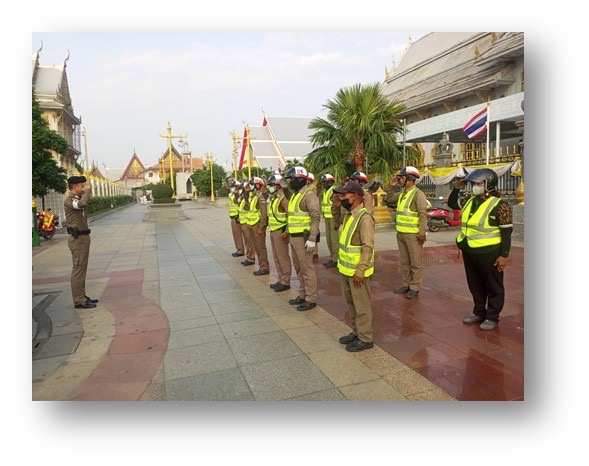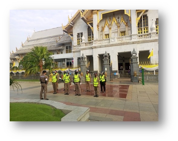 พร้อมกำลังจราจร สายตรวจอาสาจราจรปล่อยแถวแถวชี้แจงภารกิจ ตรวจความเรียบร้อยการ แต่งกายของเจ้าหน้าที่ ในการอำนวยความสะดวกให้กับนักท่องเที่ยวที่มานมัสการหลวงพ่อโสธร บริเวณลานจอดรถวัดโสธรวรารามวรวิหาร