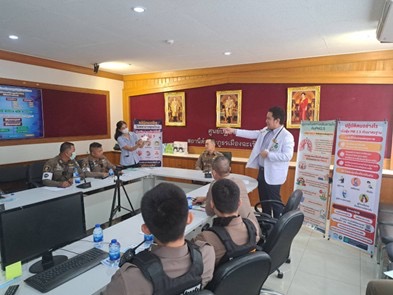 วันที่ 29 กุมภาพันธ์ 2567 เวลา 09.00 น. พ.ต.อ.ณัฐพล อะกะเรือน ผกก.สภ.เมืองฉะเชิงเทรา ร่วมกับนางนิตยา มิลล์ ผอ.รพ.พุทธโสธร จัดทำโครงการพัฒนาคุณภาพชีวิตข้าราชการตำรวจ โดยให้ความรู้ แนวทางการป้องกันและคัดกรองโรคจากมลพิษสิ่งแวดล้อมฝุ่น PM2.5 แก่ข้าราชการตำรวจ ณ ห้องประชุม ชั้น 2 สภ.เมืองฉะเชิงเทรา