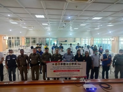 วันที่ 6 มีนาคม 2567 เวลา 13.00 น. พ.ต.อ.ณัฐพล อะกะเรือน ผกก.สภ.เมืองฉะเชิงเทรา ,พ.ต.ท.เสรี อินคง สวป.สภ.เมืองฉะเชิงเทรา พร้อมเจ้าหน้าที่ชุดปฏิบัติการชุมชนยั่งยืน ร่วมบรรยาย เรื่อง สร้างความคุ้มกันเพื่อรู้เท่าทันภัยทางไซเบอร์ และประชาสัมพันธ์โครงการชุมชนยั่งยืน พร้อมตรวจปัสสาวะนักศึกษา ณ มหาวิทยาลัยราชภัฏราชนครินทร์