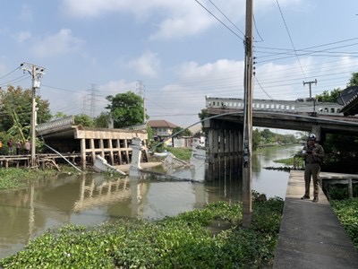 วันที่ 7 มีนาคม 2567 เวลา 10.30 น. ภายใต้การอำนวยการของ พ.ต.อ.ณัฐพล อะกะเรือน ผกก.สภ.เมืองฉะเชิงเทรา พ.ต.ท.เตชทัต เนตรุวงค์ รองผกก.จร.สภ.เมืองฉะเชิงเทรา โดย พ.ต.ต.ประจักร์ บุญณะอินทร์ สว.จร.สภ.เมืองฉะเชิงเทรา ลงพื้นที่หมู่บ้านเลคการ์เด้นโฮม หมู่ที่ 2 ตำบลคลองหลวงแพ่ง อำเภอเมือง จังหวัดฉะเชิงเทรา กรณีเหตุสะพานข้ามคลองพังชำรุดและได้ ประชุมร่วมหน่วยงานต่างๆเพื่อหารือแนวทางบรรเทาความเดือดร้อนของประชาชนที่เกิดจากสะพานพังชำรุดบริเวณดังกล่าว