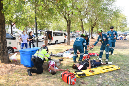 วันที่ 15 มีนาคม 2567 เวลา 09.00 น. ภายใต้การอำนวยการของ พ.ต.อ.ณัฐพล อะกะเรือน ผกก.สภ.เมืองฉะเชิงเทรา นำโดย พ.ต.ท.เตชทัต เนตรุวงค์ รอง ผกก.จร.สภ.เมืองฉะเชิงเทรา ,พ.ต.ต.ประจักร์ บุญณะอินทร์ สว.จร.สภ.เมืองฉะเชิงเทรา พร้อมกำลังจราจร ตำรวจอาสา โรงพยาบาลพุทธโสธร เจ้าหน้าที่กู้ภัยฉะเชิงเทรา และหน่วยงานที่เกี่ยวข้อง ได้ร่วมกันซักซ้อมแผนเผชิญเหตุอุบัติเหตุหมู่มาก บริเวณศาลาจตุรมุข ศาลากลางจังหวัดฉะเชิงเทรา