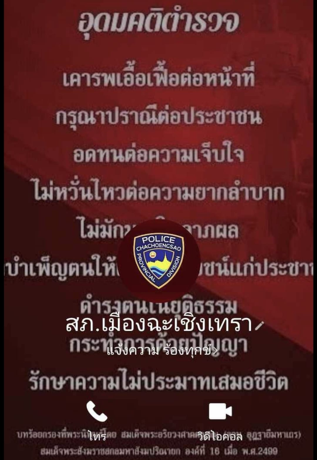 เเจ้งเตือน มิจฉาชีพแกงค์คอลเซ็นเตอร์เเอบอ้างตัวเป็นตำรวจ สภ.เมืองฉะเชิงเทราโทรไปหลอกลวงและข่มขู่ผู้เสียหายในหลายพื้นที่ โดยใช้ไลน์ ชื่อ สภ.เมืองฉะเชิงเทรา ในการติดต่อกับผู้เสียหาย มีคนตกเป็นเหยื่อมิจฉาชีพหลายราย ประชาสัมพันธ์ฝากพี่น้องประชาชนอย่าหลงเชื่อเด็ดขาด สภ.เมืองฉะเชิงเทราไม่มีไลน์ที่ใช้ชื่อ สภ.เมืองฉะเชิงเทราที่ใช้ในการติดต่อกับประชาชน.