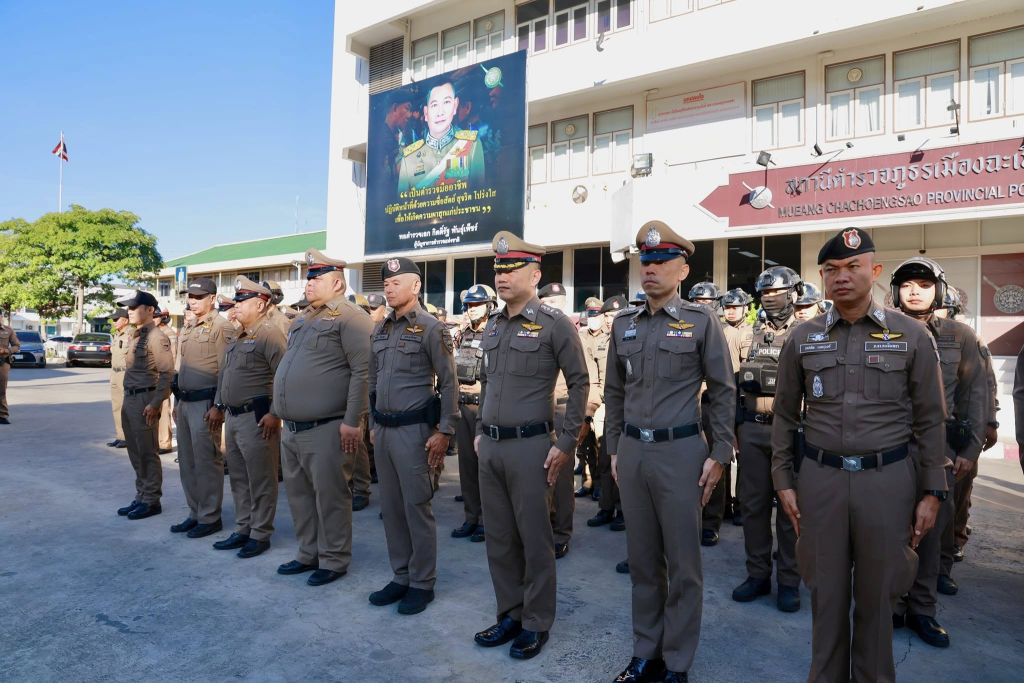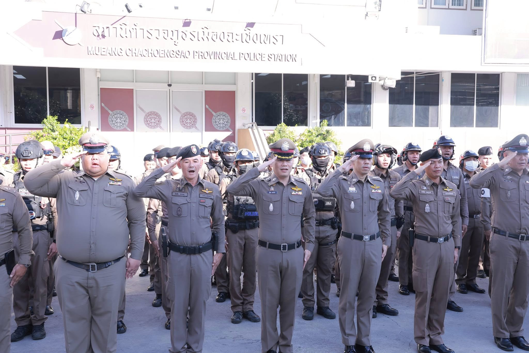 พ.ต.อ.ณัฐพล อะกะเรือนผกก.สภ.เมืองฉะเชิงเทรา พร้อมด้วย ข้าราชการตำรวจ สภ.เมืองฉะเชิงเทรา ร่วมเข้าแถวเคารพธงชาติ ไหว้พระสวดมนต์ และกำชับพร้อมตรวจเครื่องแต่งกาย และทรงผม ณ บริเวณหน้า สภ.เมืองฉะเชิงเทรา