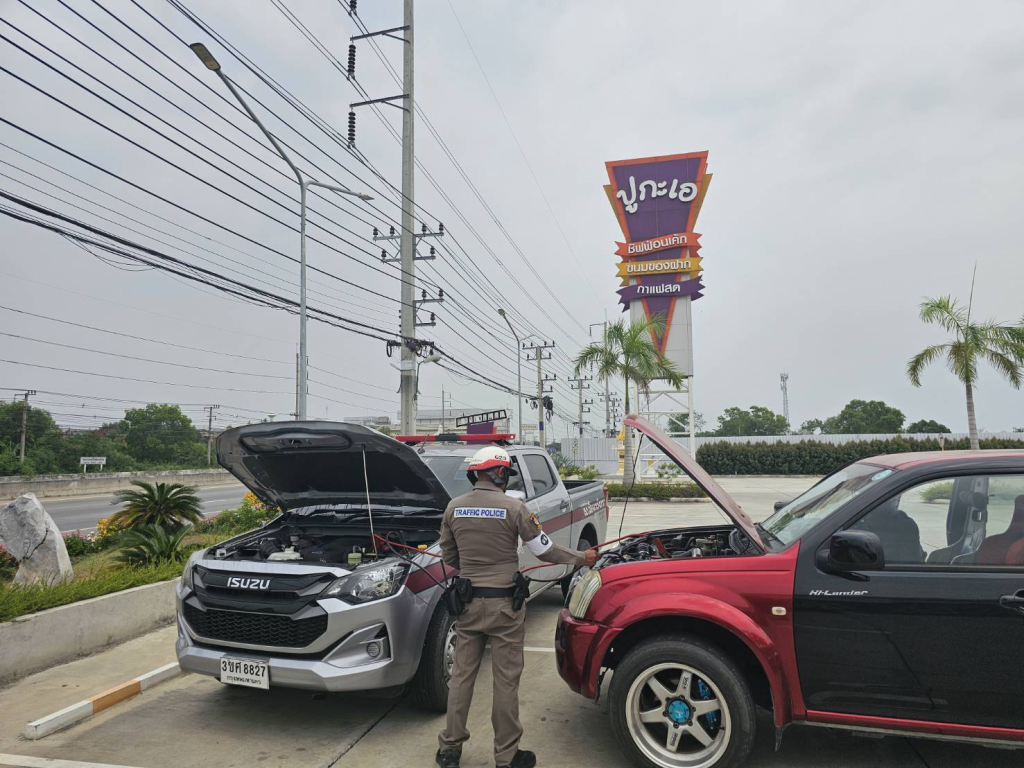 พร้อมกำลัง สายตรวจตำบลนครเนื่องเขต ช่วยเหลือประชาชน พ่วงแบตเตอรี่ บริเวณ ร้านปูกะเอ ถนนสุวินวงศ์ สามารถเดินทางต่อไปได้