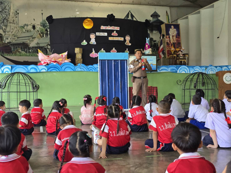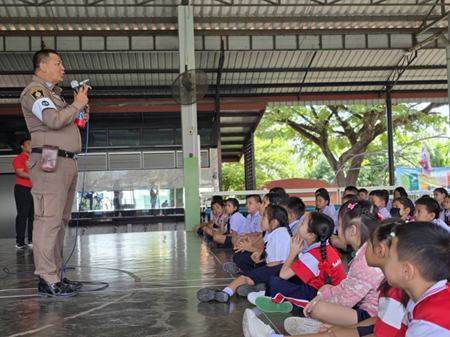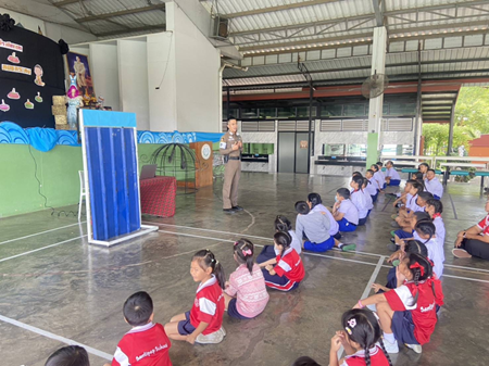พร้อมกำลัง ให้ความรู้การอบรมความปลอดภัยในสถานศึกษา เรื่อง การป้องกันเด็กติดในรถ ณ โรงเรียนสันติภาพ