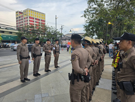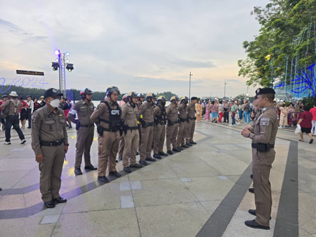 และ พ.ต.ต.ประจักร์ บุญณะอินทร์ สว.จร.ฯ ประชุมชี้แจง ปล่อยแถวตรวจสอบความพร้อมข้าราชการตำรวจรักษาความปลอดภัยและอำนวยความสะดวกการจราจรงานลอยกระทงประจำปี 2567 บริเวณหน้า รพ.พุทธโสธร จังหวัดฉะเชิงเทรา