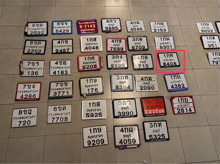 ผู้ต้องหา พร้อมด้วยของกลางรถจักรยานยนต์จำนวน 14 คัน, แผ่นป้ายทะเบียนรถจักรยานยนต์จำนวน 51 แผ่น ผลการตรวจสอบพบแผ่นป้ายทะเบียนรถจักรยานยนต์ตรงกับที่ผู้เสียหายแจ้งความร้องทุกข์ไว้ต่อพนักงานสอบสวน สภ. เมืองฉะเชิงเทรา จำนวน 4 คัน จึงได้แจ้งข้อกล่าวหาให้กับผู้ต้องหาทราบเพื่อดำเนินการตามกฎหมายต่อไป