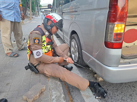โดย ร.ต.อ.อิสเรส วงศ์ชาติ รอง สว.จร.สภ.เมืองฉะเชิงเทรา พร้อมกำลังจราจร และอาสาจราจร ขณะปฏิบัติหน้าที่อำนวยความสะดวกการจราจรบริเวณ หน้าโรงเรียน พบรถตู้รับส่งนักเรียนจอดเสีย จึงได้ช่วยกันซ่อมและเปลี่ยนอะไหล่ จนสามารถเดินทางต่อไปได้