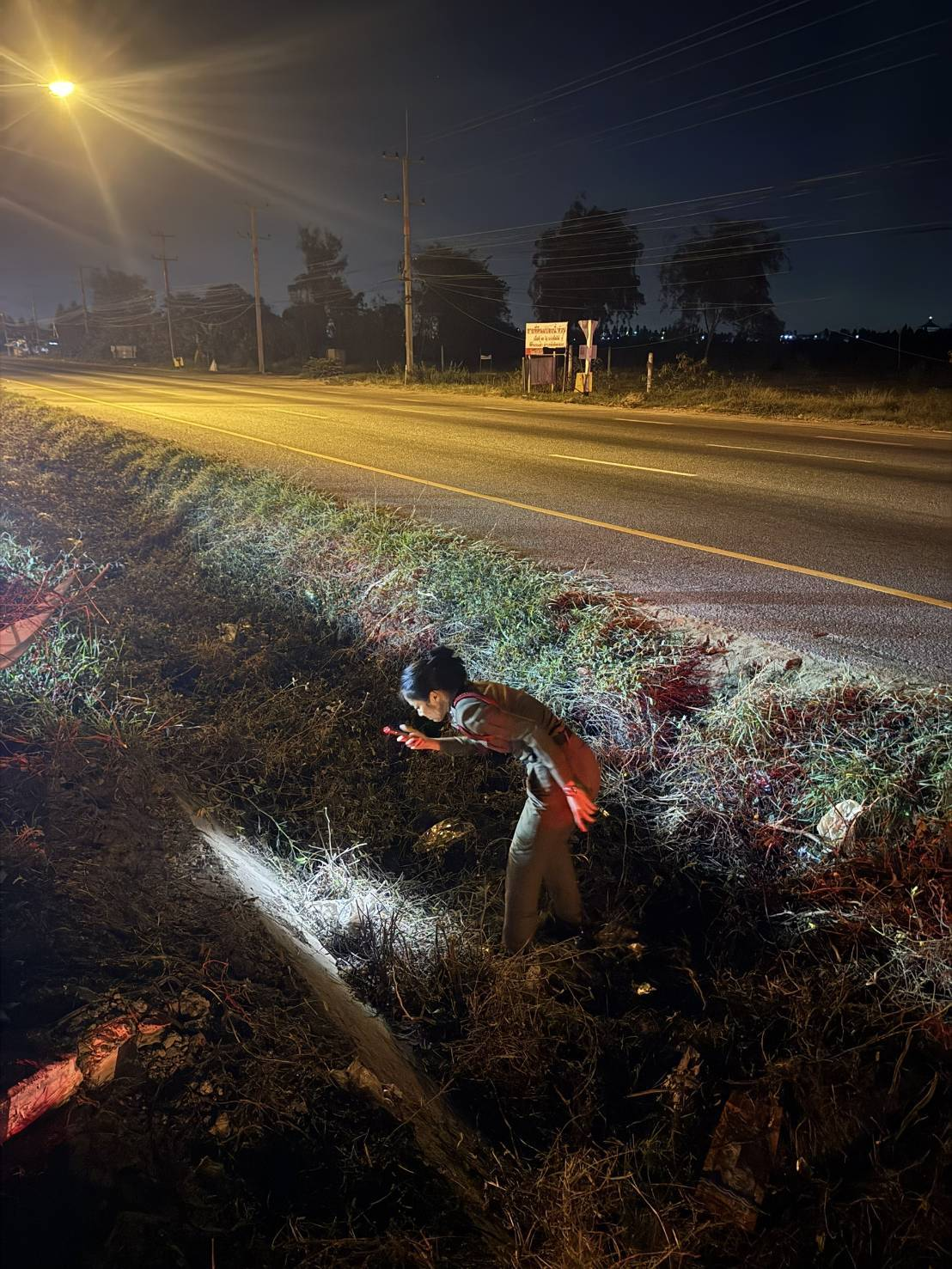 วันที่ 28 ธันวาคม 2567 เวลาประมาณ 04.30 น. พนักงานสอบสวนได้รับแจ้งเหตุรถจักรยานยนต์พลิกคว่ำ มีคนเสียชีวิตในที่เกิดเหตุ จึงประสานแพทย์เวรออกตรวจที่เกิด จากการตรวบสอบ สภาพศพนอนคว่ำหน้าอยู่บนถนน ในช่องทางด้านขวา พบรถจักรยานยนต์ ฮอนด้าคลิก สีแดง ได้รับความเสียหาย มีร่องรอยเฉี่ยวชนแบริเออร์คอนกรีตเป็นรอยยาวและมีคราบเลือดบนแบริเออร์ ไม่มีทรัพย์สินราชการเสียหาย เบื่องต้นสันนิษฐานว่า เกิดจากการหลับใน โดยได้ถ่ายภาพ ทำแผนที่เกิดเหตุ ส่งตรวจเลือดวัดปริมาณแอลกอฮอล์ และร่วมกับแพทย์เวรชันสูตรพลิกศพเพื่อดำเนินการต่อไป