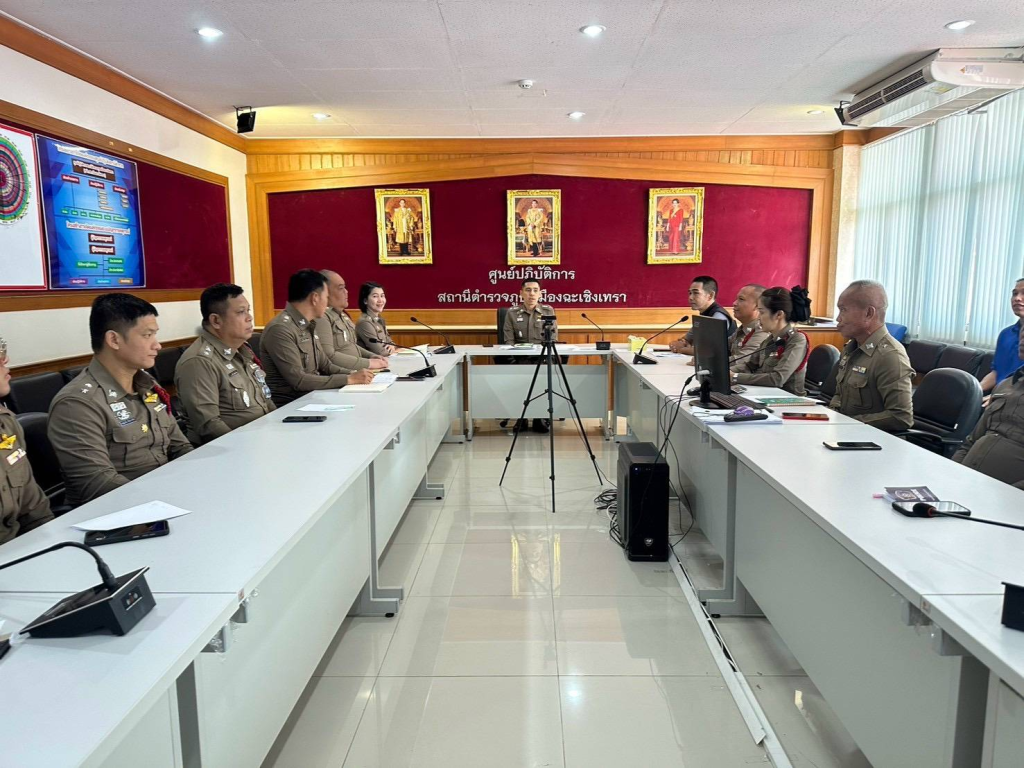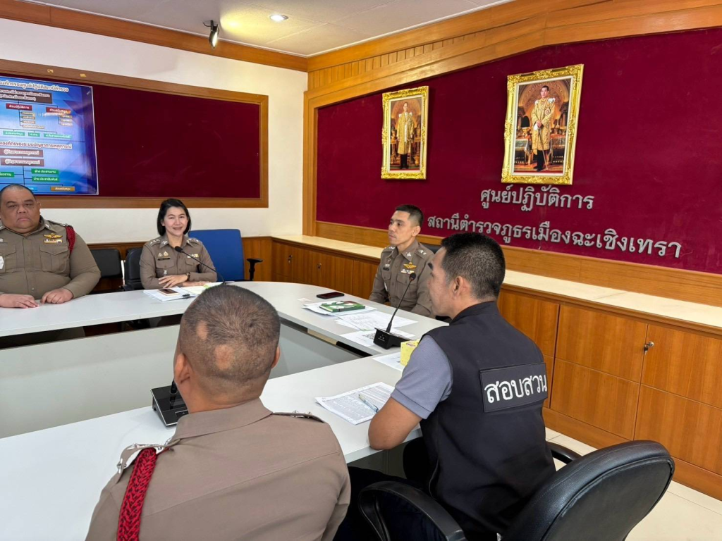 พ.ต.ท.ฉัตรชัย ตาวัน รอง ผกก.(สอบสวน)สภ.เมืองฉะเชิงเทรา พร้อมด้วยพนักงานสอบสวน ประชุมเร่งรัดผลการปฏิบัติงานด้านสอบสวน และเร่งรัดการสอบสวนคดีอาญา โดยให้เร่งรัดสำนวนค้างทั้งหมดให้เสร็จสิ้นตามกรอบระยะเวลาที่กำหนด ณ ห้องประชุมชั้น 2 สภ.เมืองฉะเชิงเทรา