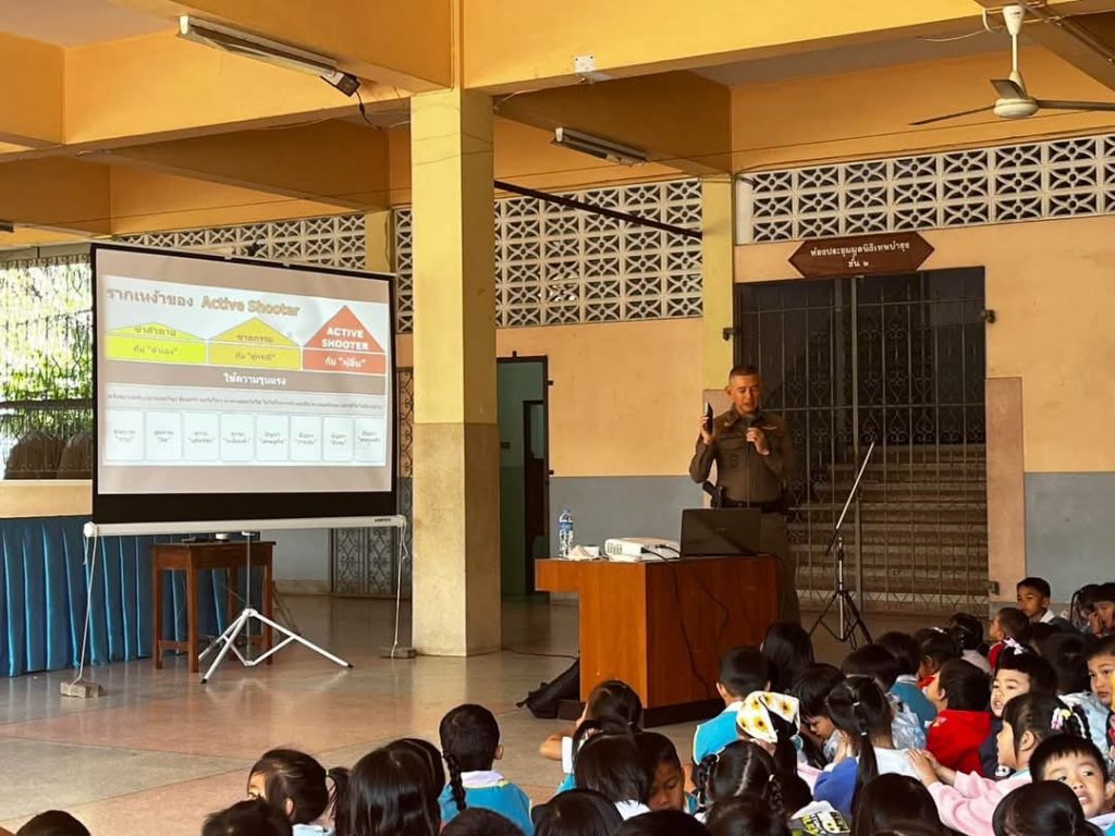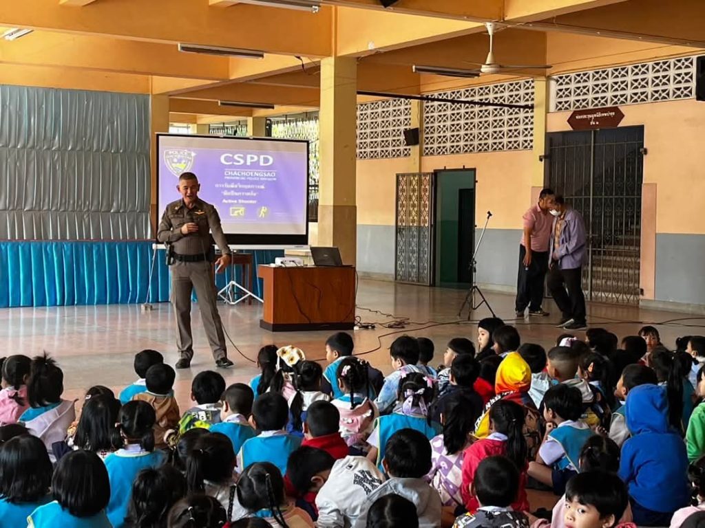วันที่ 7 มกราคม 2568 เวลา 09.00-14.30น. ภายใต้การอำนวยการของ พ.ต.อ.ณัฐพล อะกะเรือนผกก.สภ.เมืองฉะเชิงเทรา มอบหมายให้ พ.ต.ท.วันชัย ประถมรรท. รอง ผกก.ป.สภ.เมืองฉะเชิงเทรา เป็นวิทยากร ให้ความรู้เกี่ยวกับแผนเผชิญเหตุ กรณีเกิดเหตุกราดยิง (actve shooter) หรือเหตุการณ์การใช้ความรุนแรงในรูปแบบต่างๆ” เพื่อสร้างภูมิต้านทานในการรับมือเฉพาะหน้า มีวิธีเอาตัวรอดเป็นการลดผลกระทบ ความรุนแรงและลดความสูญเสียที่จะเกิดขึ้น ให้กับนักเรียนชั้นมัธยมศึกษาปีที่ 1-6 โรงเรียนวัดโสธรวรารามวรวิหาร