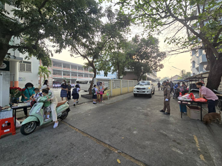 ร่วมกับ ป้องกันจังหวัดฉะเชิงเทรา เจ้าหน้าที่ตำรวจจราจร เจ้าหน้าที่อาสาสมัครฝ่ายปกครอง ร่วมกันจัดระเบียบการจอดรถบริเวณถนนมรุพงษ์ ซอย 4 ซึ่งมีลักษณะเป็นซอยแคบ มีรถจอดซ้อนคัน ทำให้เกิดปัญหาการจราจรติดขัด โดยมีการทดลองใช้ลักษณะการจอดแบบแทยง เพื่อป้องกันปัญหาการจอดซ้อนคัน การจราจรยังเคลื่อนตัวได้ดี