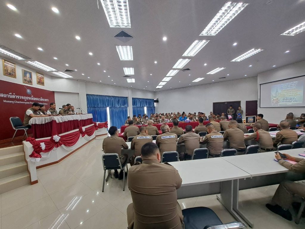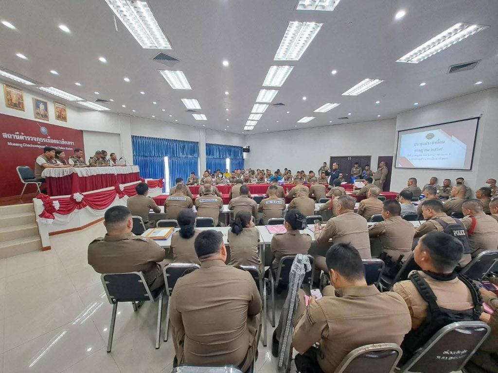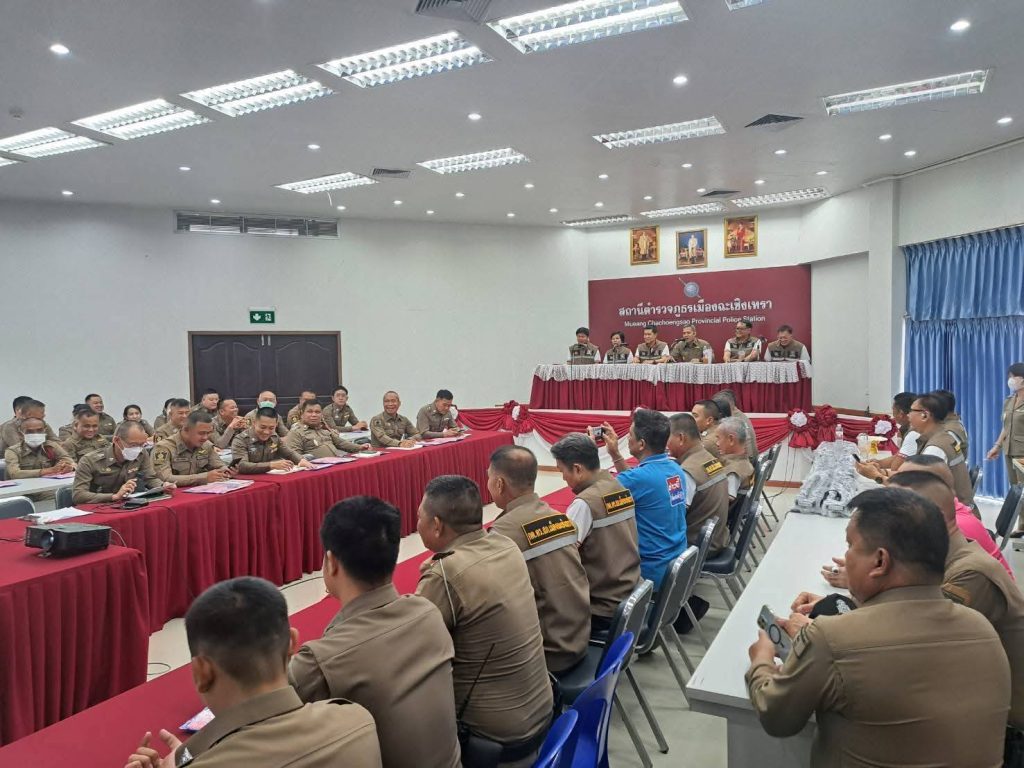 พร้อมด้วยคณะ กต.ตร.สภ.เมืองฉะเชิงเทรา และข้าราชการตำรวจ สภ.เมืองฉะเชิงเทรา ร่วมประชุมมอบนโยบายในการปฏิบัติหน้าที่และกำชับข้อสั่งการของผู้บังคับบัญชา และได้ดำเนินการดังต่อไปนี้
