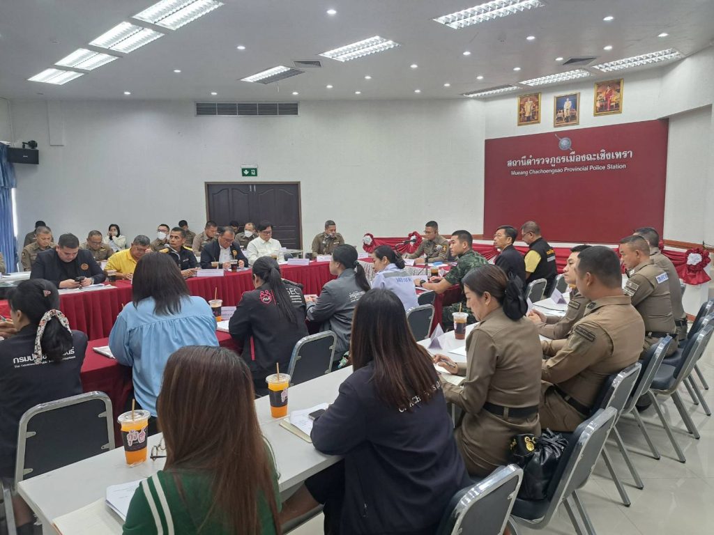 พร้อมด้วยข้าราชการตำรวจ และหน่วยงานที่เกี่ยวข้อง ร่วมประชุมเตรียมความพร้อมรักษาความปลอดภัยและอำนวยความสะดวก ด้านการจราจรงานนมัสการหลวงพ่อโสธรและงานประจำปีจังหวัดฉะเชิงเทรา 2568 ณ ห้องประชุม ชั้น 4 สภ.เมืองฉะเชิงเทรา