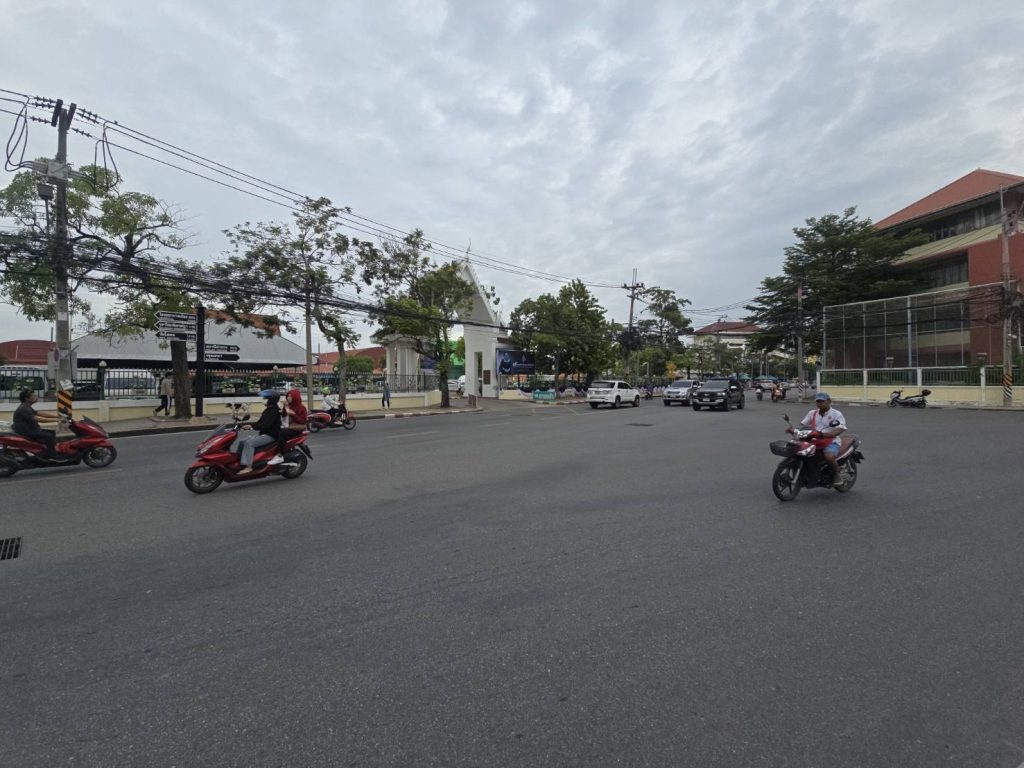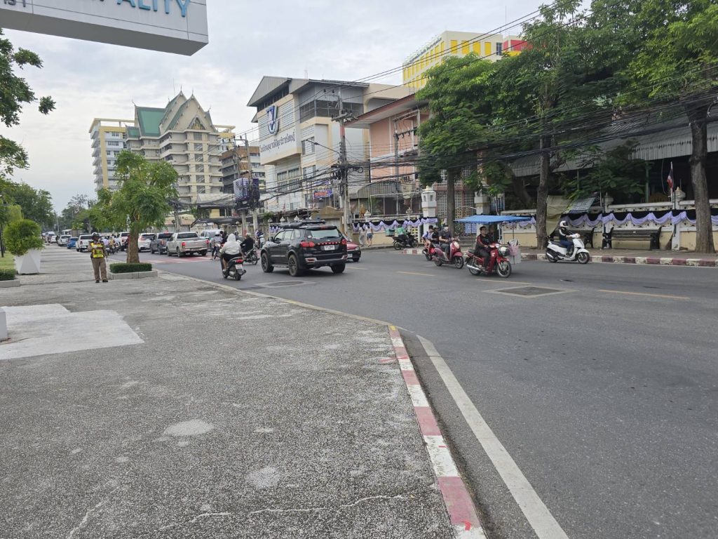 พร้อมกำลังจราจร อำนวยความสะดวกการจราจร ถนนมรุพงษ์หน้าโรงเรียนวัดเมือง ปริมาณรถน้อยการจราจรคล่องตัว