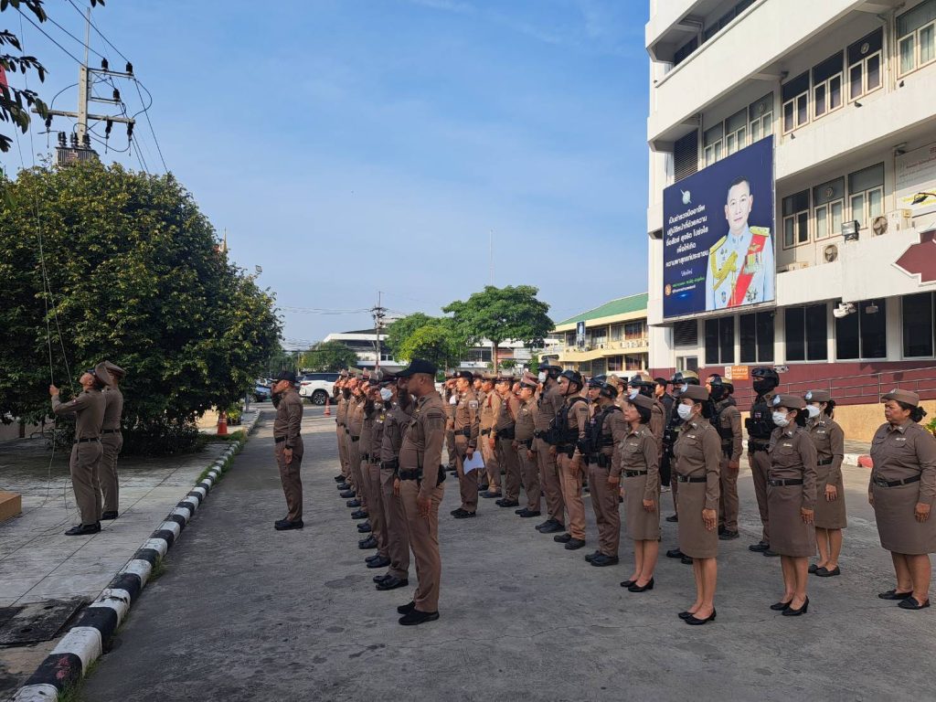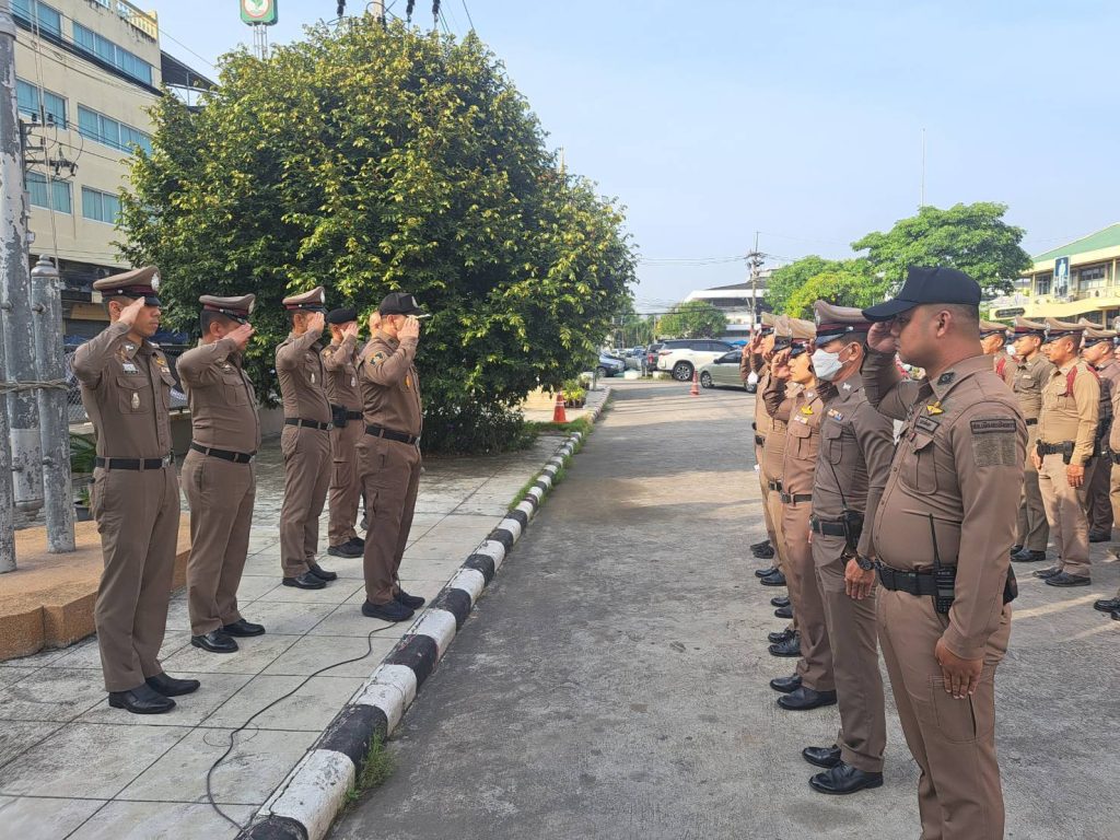 กล่าวคำอุดมคติตำรวจ ตามแนวทางการยกระดับการบริการประชาชนบนสถานีตำรวจและเพื่อแสดงออกถึงความจงรักภักดีต่อสถาบันชาติ ศาสนา พระมหากษัตริย์ 🔷ณ หน้า สภ.เมืองฉะเชิงเทรา